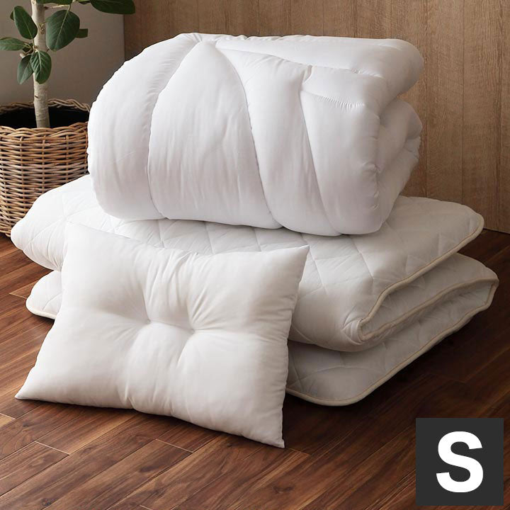 掛け布団・敷き布団・枕のすぐに使える布団3点セット商品です。