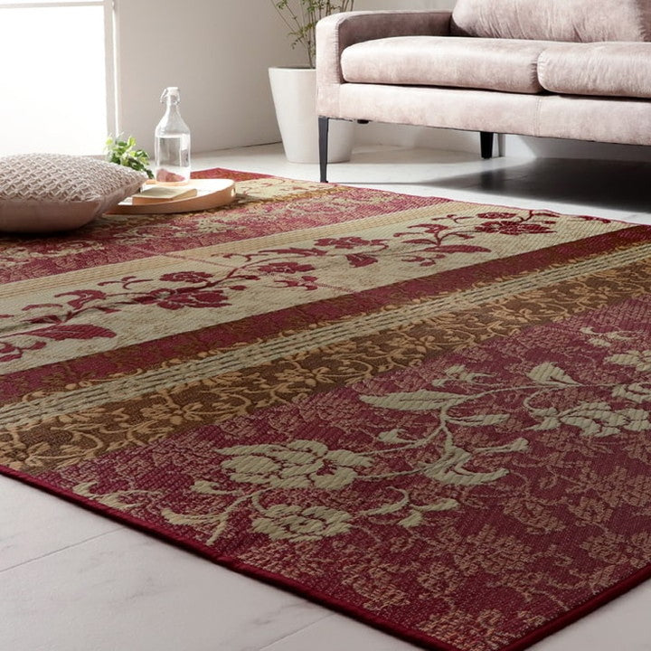 一般的ない草ラグよりも使用するい草の本数が多いため、繊細な花柄が表現でき気品あふれるデザインになっています。