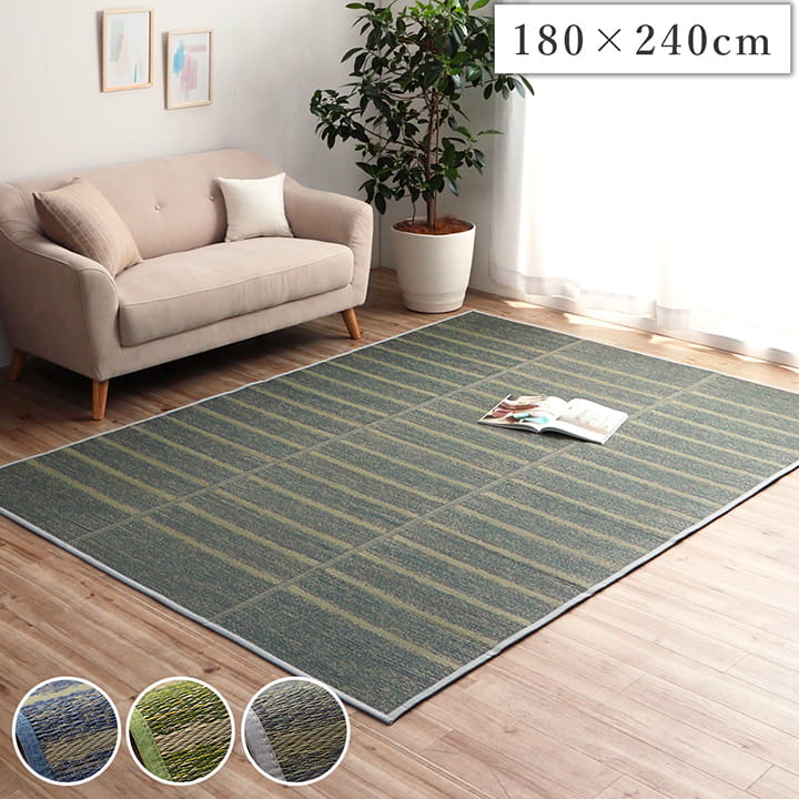 ラグ 3畳 180×240cm 長方形 い草 自然素材 シンプル ボーダー 裏面すべり止め付き 滑りにくい 抗菌防臭(代引不可)