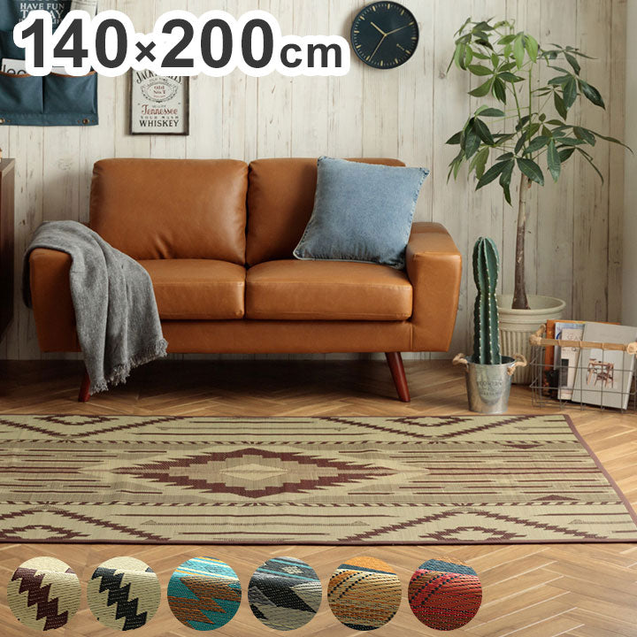 キリムシリーズ ラグ い草 ラグ 約140×200cm カーペット 夏用 節電 おしゃれ 北欧 自然素材 天然素材 キリム柄 エスニック 人気 インテリア おしゃれ 北欧 オールシーズン かわいい(代引不可)