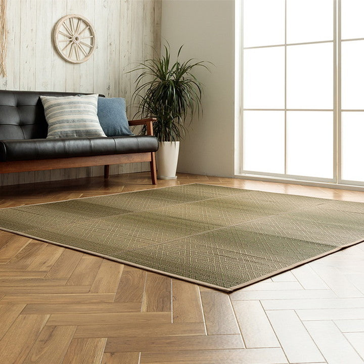 さわやかなカラーリングとグラデーションが涼しげない草ラグです。