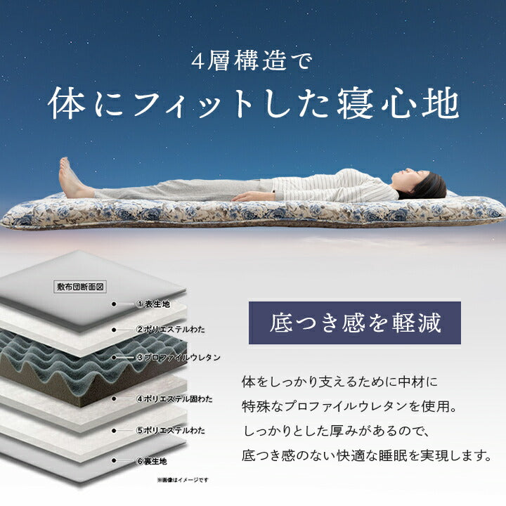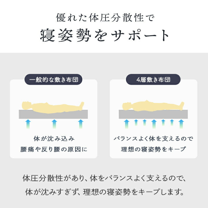 敷布団 マットレス シングルロング 100×210cm 4層敷布団 ボリュームマットレス 軽量 バーシブル 三つ折りピーチスキン加工 体圧分散 ふとん 収納 折りたたみ(代引不可)