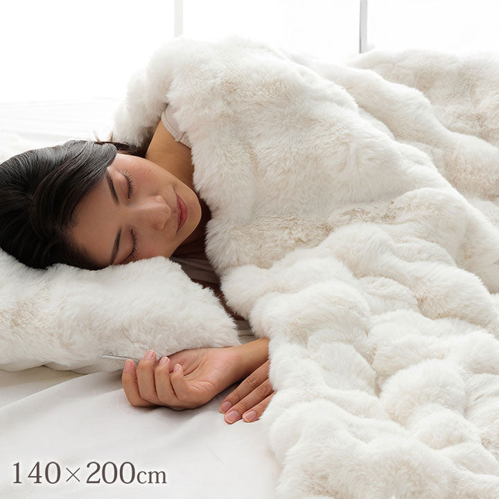 もこもことしたシルエットが可愛い、ラビットファー調の2枚合わせ毛布です。
