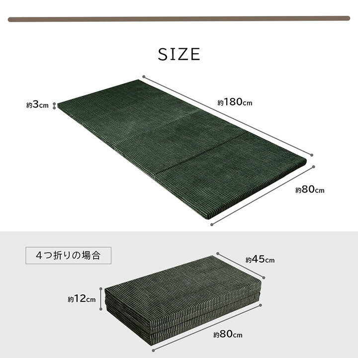 コーデュロイ調の凹凸した肌触りとごろ寝にちょうど良いサイズの4連マットです。