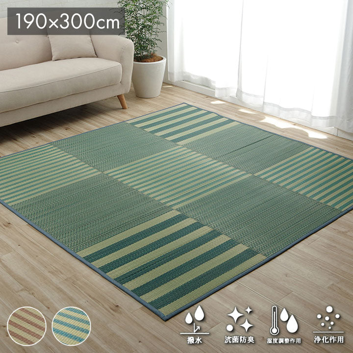 素材=表地=い草 ※普通織 ※はっ水加工 中材=ウレタンフォーム5mm 裏地=ポリエステル100%【滑り止め不織布】 ヘリ=ポリエステル100%