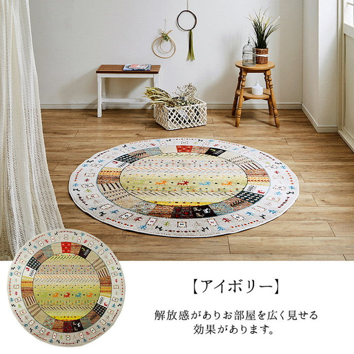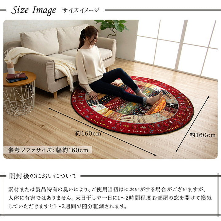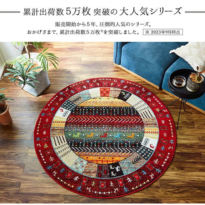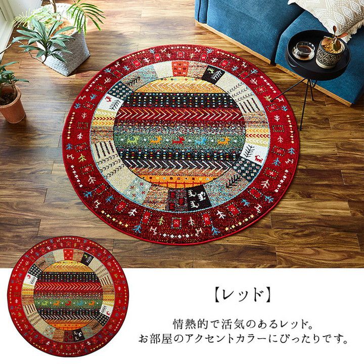カーペット トルコ製 直径160cm ウィルトン織り カーペット 円形 丸形 ギャッペ調ラグ レッド インテリア 韓国インテリア 北欧 シンプル かわいい おしゃれ オールシーズン リビング(代引不可)