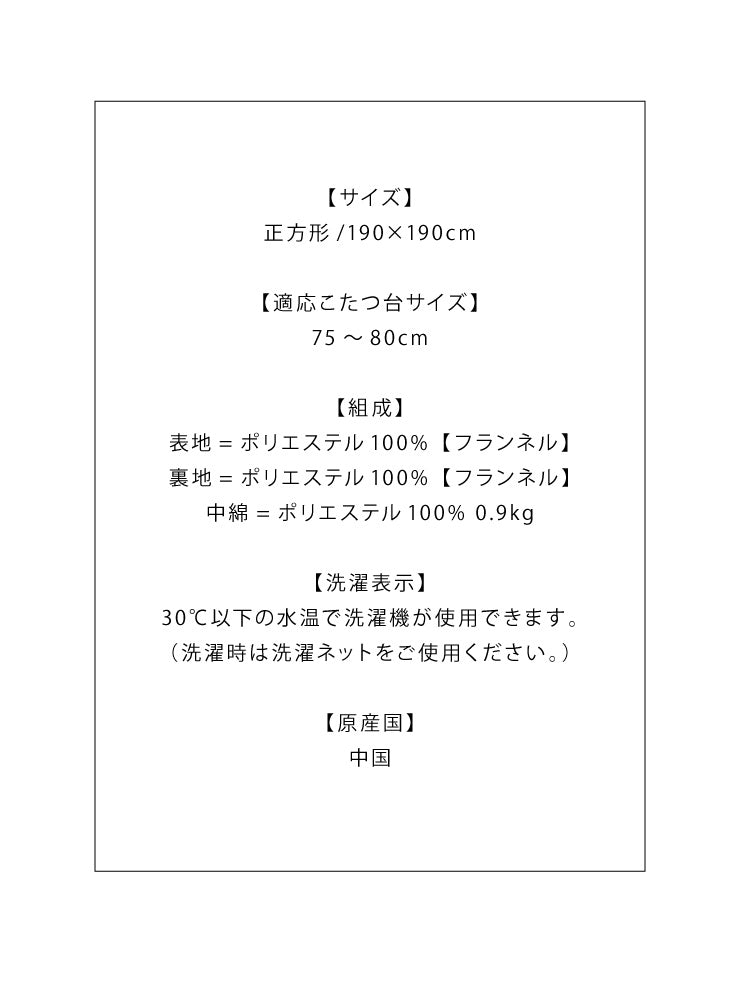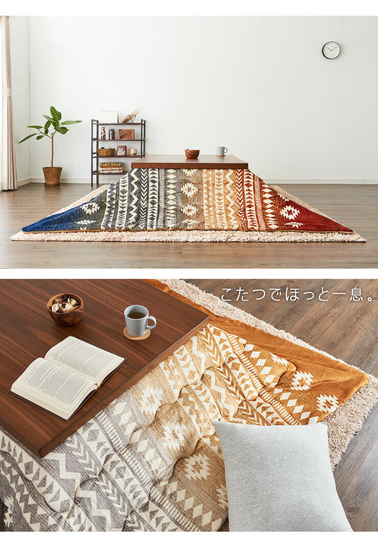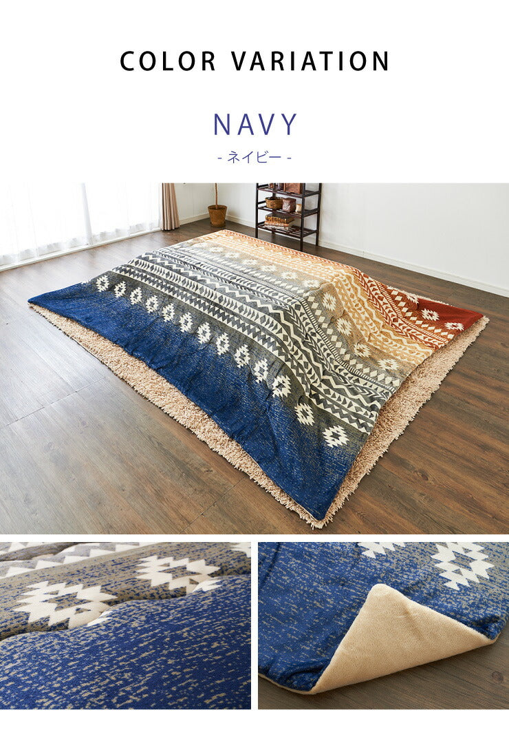 こたつ布団 190×190cm 正方形 キリム柄 薄掛けタイプ 撥水加工 洗える ウォッシャブル 省スペース こたつ掛け布団 保温力(代引不可)