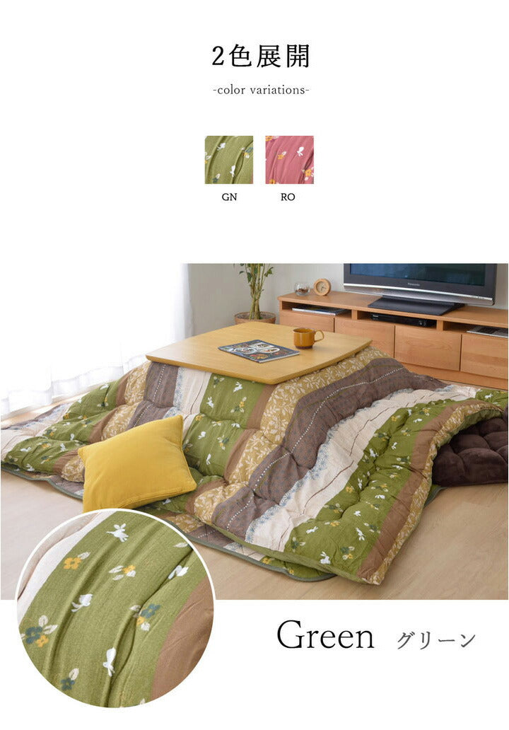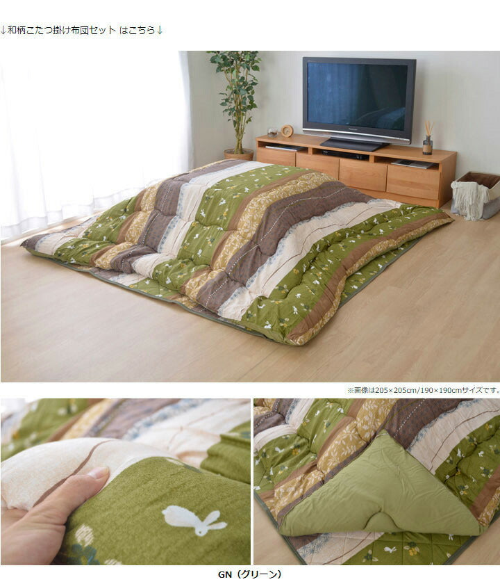 こたつ布団 和柄 こたつ布団セット 正方形 『こよみ』 ローズ グリーン 約205×205cm おしゃれ かわいい ピーチスキン加工(代引不可)