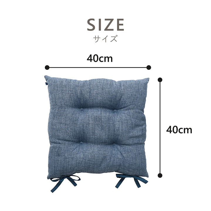 椅子やリビングでも使用できるシートクッションです。無地でお部屋に合わせやすいデザインの商品です。国内で綿入れ加工をしているためほどよいクッション性が特徴です。