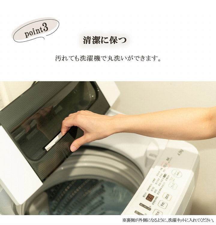汚れても洗濯機で丸洗いOKで、マットを清潔に保てます。※洗濯の際は洗濯ネットをご使用ください。