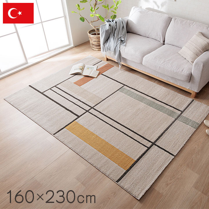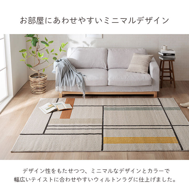 ウィルトンカーペット カーペット デザインラグ ウィルトンカーペット 長方形 アイボリー 北欧柄 ライン柄 約160×230cm(代引不可)