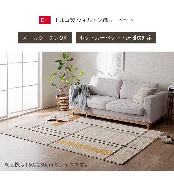 ウィルトンカーペット カーペット デザインラグ ウィルトンカーペット ルームマット ラグマット 長方形 アイボリー 北欧柄 ライン柄 約80×140cm(代引不可)