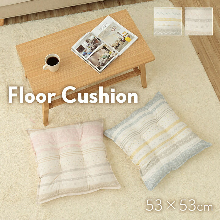クッション約53×53cm 日本製 リビング用 シート 北欧 洗える かわいい スラブ生地 おしゃれ 国内綿入れ加工 フロアクッション 座布団 ダイニング チェア(代引不可)