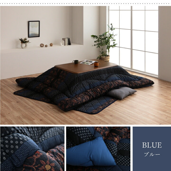 日本製 こたつ布団 こたつ厚掛敷布団 セット 和柄 長方形 大判 ブルー 約205×285cm かわいい おしゃれ(代引不可)