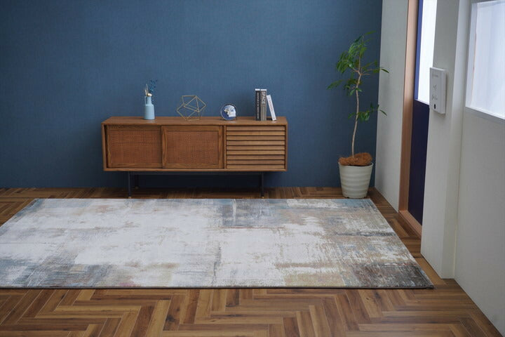 斬新なデザインとモダン要素ある色合いを組み合わせた、使いやすいアブストラクト柄のウィルトンラグ。