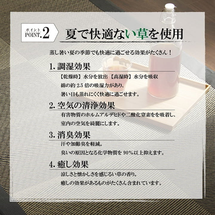 イ草表面にヒバエッセンス加工を施しています(抗菌・防臭効果)。