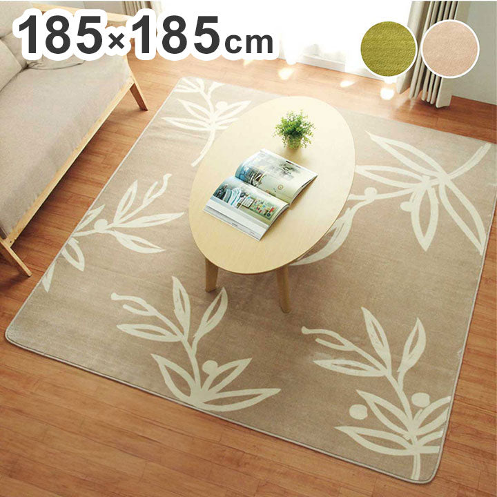 ラグ 2畳 約185×185cm カーペット 洗える 花柄 リーフ柄 ホットカーペット対応 フランネル 丸洗い 洗濯可能 滑り止め加工 軽量 コンパクト 省スペース インテリア 北欧 おしゃれ かわいい 新生活(代引不可)