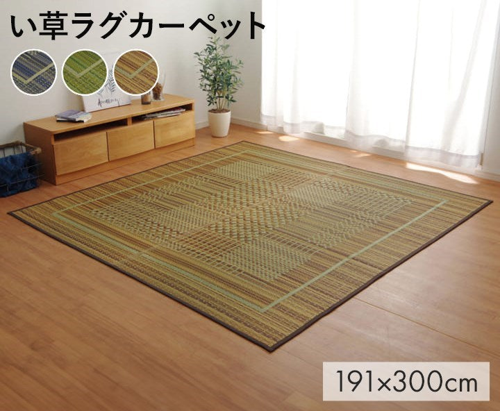 い草ラグ 消臭 カーペット 長方形 ブルー 約191×300cm (裏:不織布) 滑りにくい加工 プレア(代引不可)
