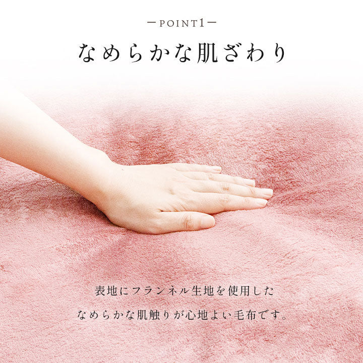 ・表地にフランネル生地を使用した、なめらかな肌触りが心地よい毛布です。