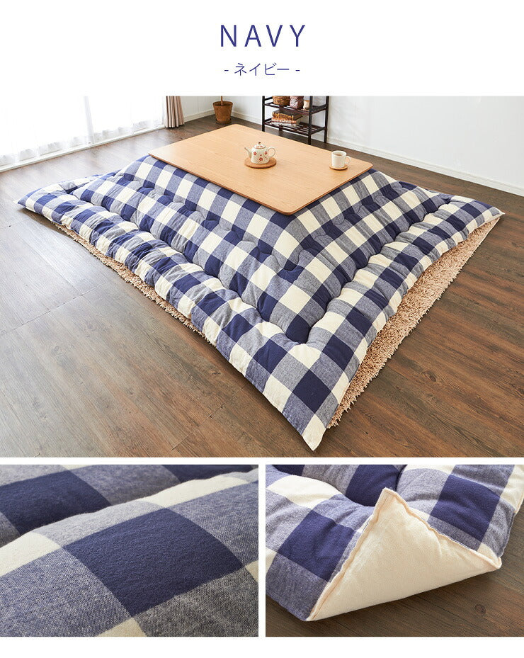 日本製 こたつ布団 205×245cm 長方形 チェック柄 厚掛け布団 インド綿100%使用 厚掛け こたつ掛け布団 保温力 省エネ(代引不可)