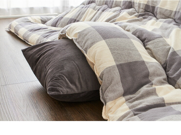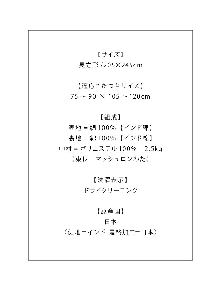 生地にインド綿を使用したこたつ布団です。デザインはお部屋のテイストを選ばず飽きのこないナチュラル&ベーシックにしました。