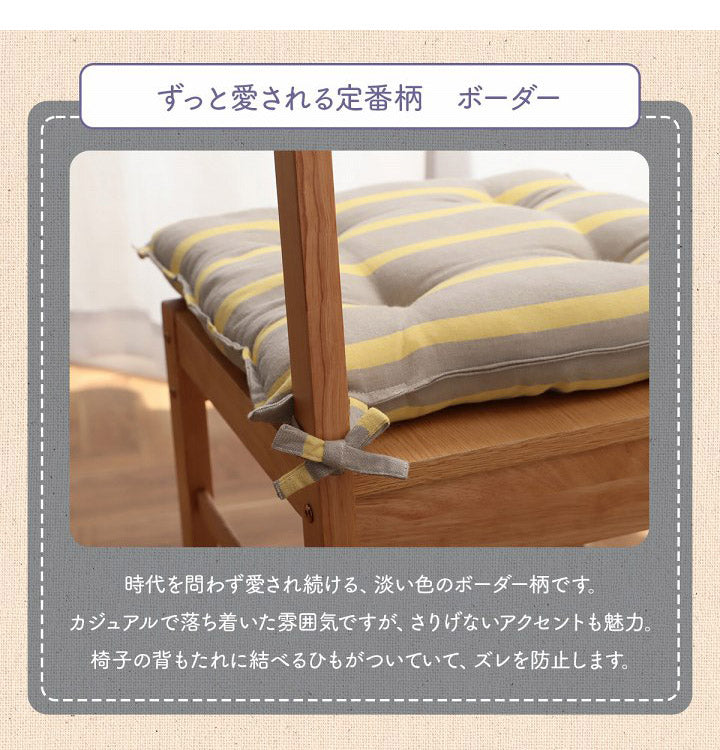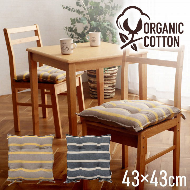 オーガニックコットン クッション シート 角丸 椅子 43×43cm 日本製 洗える 綿100% ボーダー チェア いす シートクッション おしゃれ かわいい ポール(代引不可)