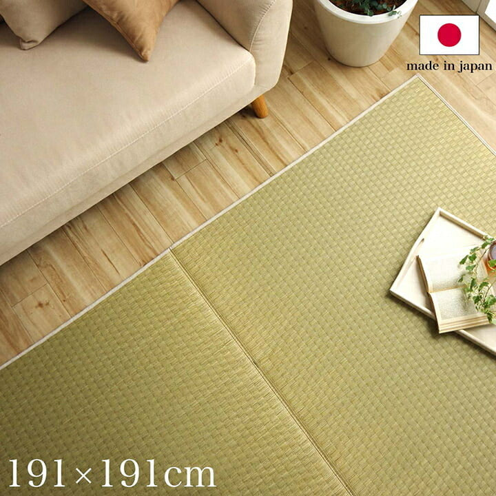 ラグ 正方形 い草 日本製 国産 自然素材 ナチュラル 市松柄 オールシーズン 消臭 シンプル 約2畳 約191×191cm ホットカーペット対応 床暖房対応 プレーン(代引不可)