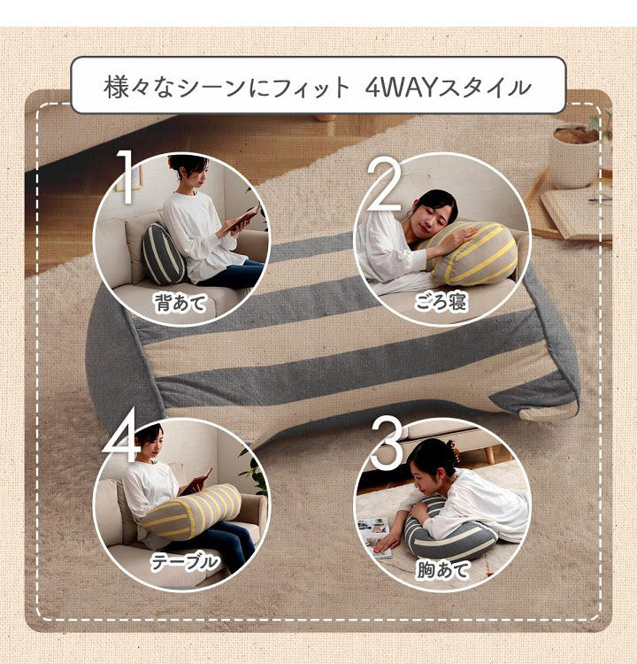 シンプルで飽きの来ないデザインで、ソファの腰当としてや、座布団、枕代わり、読書に等、それぞれのライフスタイルにあった用途でご使用いただけるよりかかりクッションです。