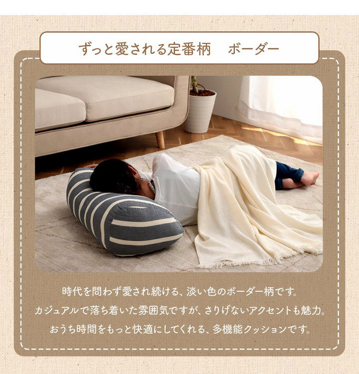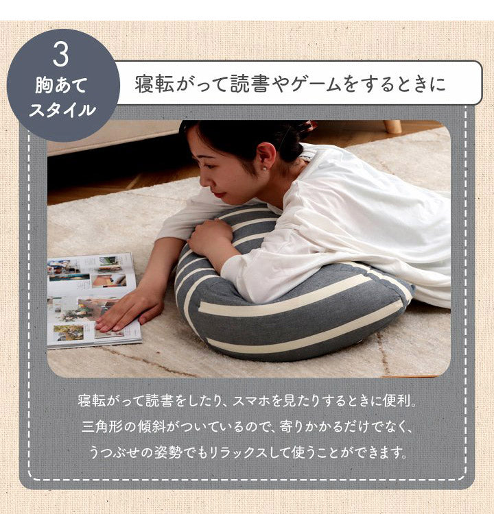 オーガニックコットン 多機能クッション 洗える 寄りかかり 日本製 綿100% ボーダー 背もたれ 約60×35×25cm おしゃれ かわいい 三角クッション スマホ ゲーム ゲーミング ポール(代引不可)