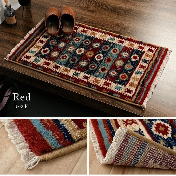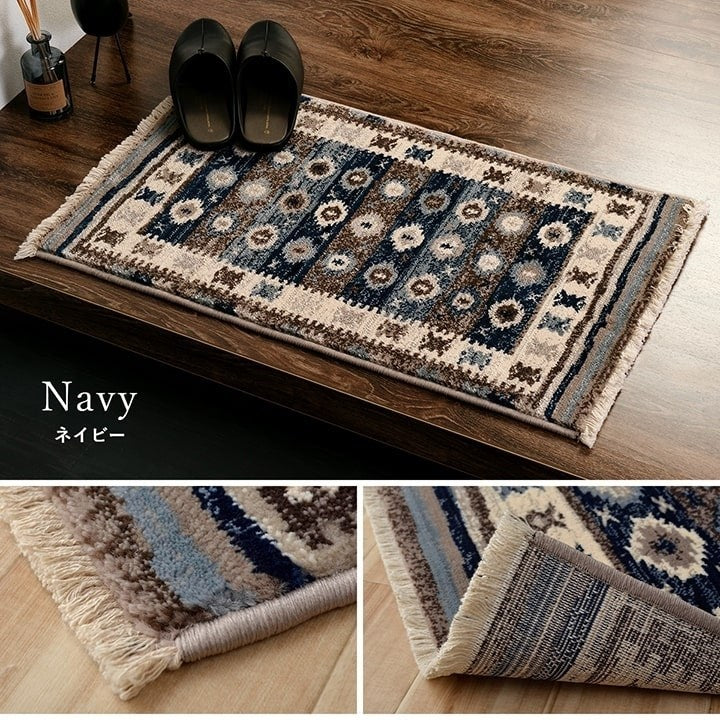 玄関マット ウィルトン織 キリム柄 ベッドサイド用 ソファー前用 約60×90cm ネイビー プルメリア(代引不可)