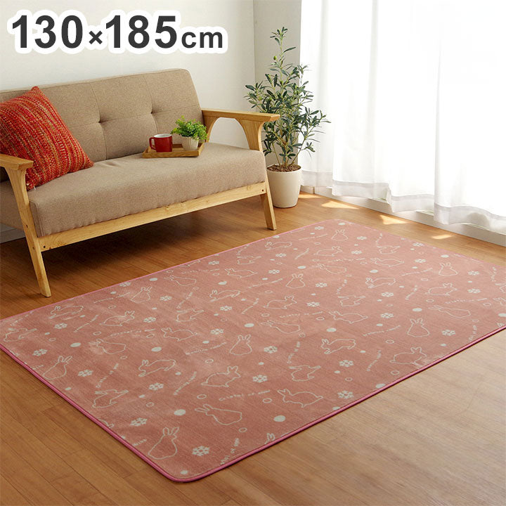 ラグ カーペット 1.5畳 約130×185cm 洗える アニマル柄 ウサギ柄 ラビット柄 ピンク ホットカーペット対応 床暖房 滑り止め加工 インテリア おしゃれ オールシーズン 北欧 かわいい 女性(代引不可)