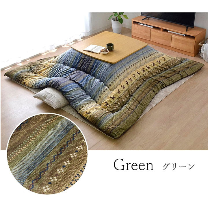 かわいらしいギャッベ柄をモチーフにした大人かわいいこたつ布団です。