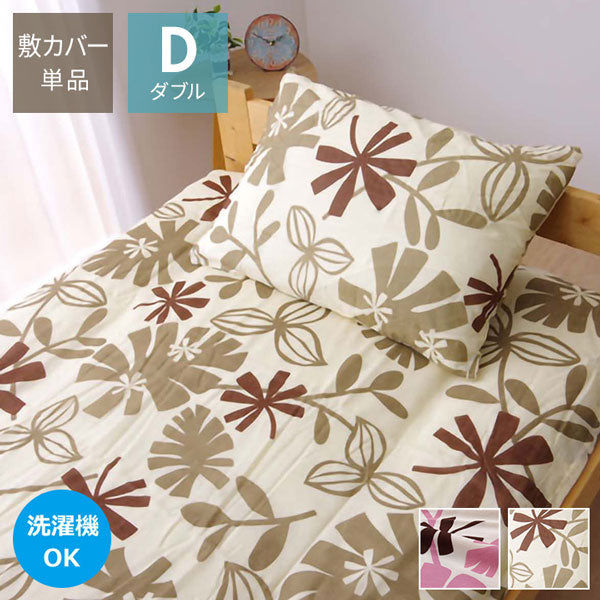 布団カバー 洗える 花柄 リーフ柄 『ルイード 敷き布団カバー』 ブラウン ダブル 約145×215cm ルイード(代引不可)