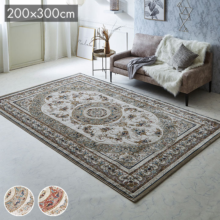 アイボリーホワイトベースで可愛らしいクラシック柄のウィルトンラグ。