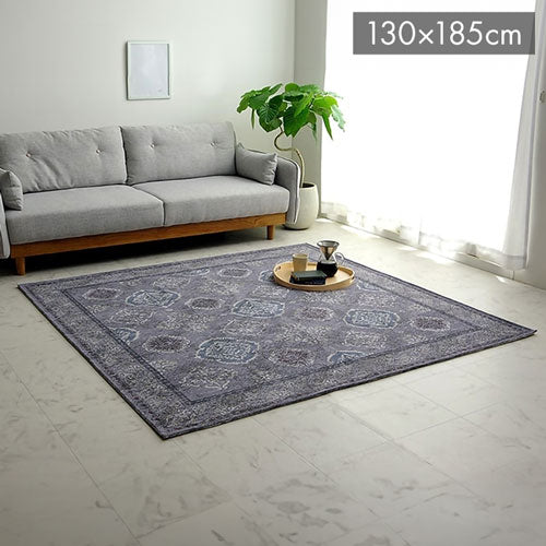 ラグ 洗える 長方形 アラベスク柄 アンティーク調 オリエンタル 滑り止め加工 ズレにくい コンパクト グレー 約130×185cm 約1.5畳 オールシーズン ホットカーペット対応 床暖房対応 レヴァン(代引不可)