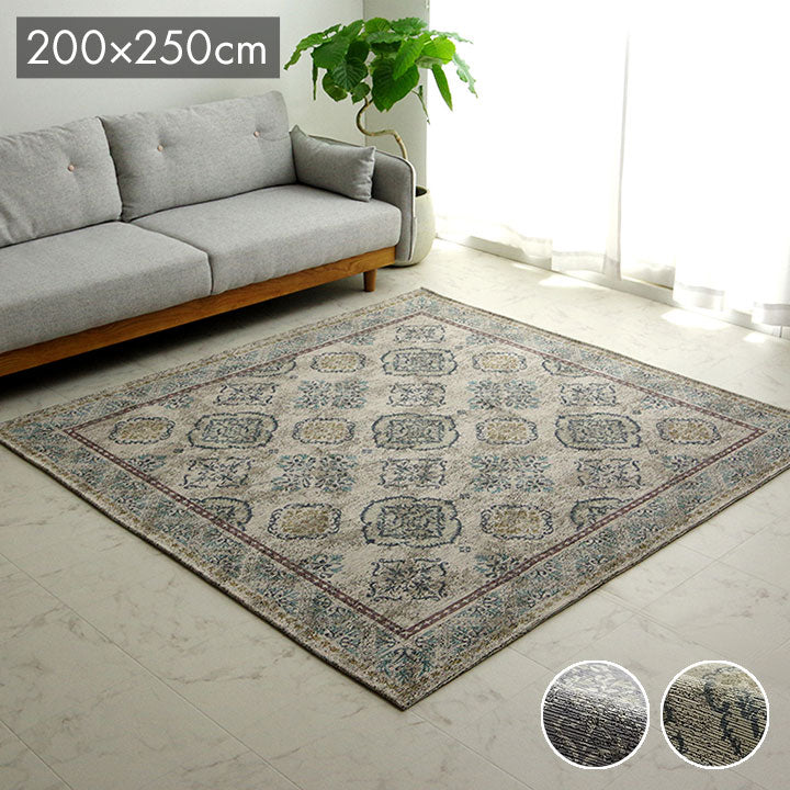 ラグ 洗える 正方形 アラベスク柄 アンティーク調 オリエンタル 滑り止め加工 ズレにくい コンパクト ベージュ 約200×250cm 約3畳 オールシーズン ホットカーペット対応 床暖房対応 レヴァン(代引不可)