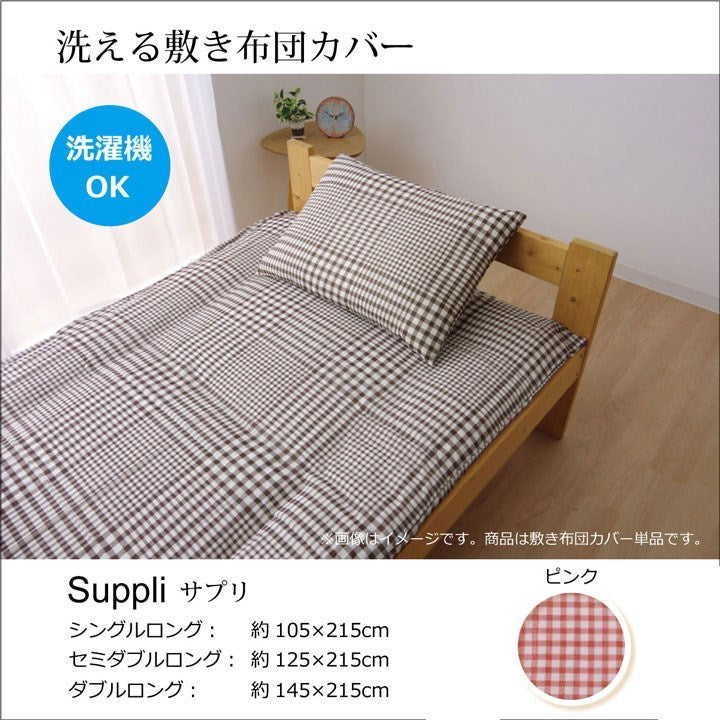 布団カバー 洗える チェック柄 『サプリ 敷き布団カバー』 ピンク セミダブル 約125×215cm サプリ(代引不可)
