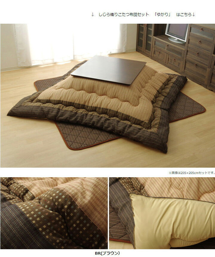 こたつ布団 しじら こたつ厚掛敷布団セット 『ゆかり』 ブラウン ブラック 約205×205cm おしゃれ かわいい シック 和風(代引不可)