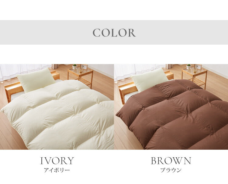 ※羽毛は天然素材のため、無臭ではございません。原毛は洗浄を十分に行っておりますが、開梱直後や温度・湿度等の環境等により臭いを感じる場合がございますので、開封直後には風通しの良い場所での十分な陰干し等をお勧めいたします。なお、天然羽毛の臭いのため人体に害はございませんのでご安心ください。