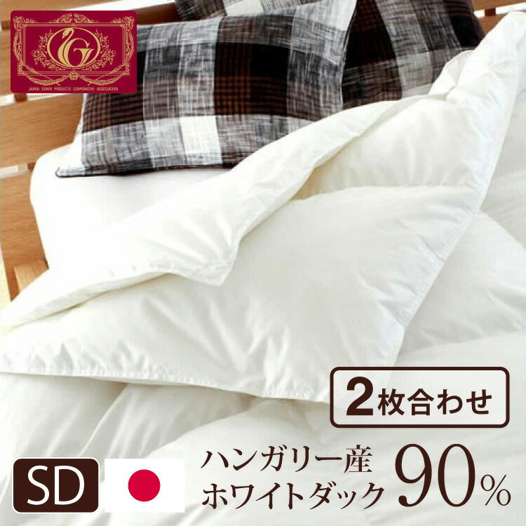 日本製 2枚合わせ 羽毛布団 セミダブル エクセルゴールドラベル ハンガリー産ホワイトダックダウン90% 350dp 充填量1.4kg 立体キルト 国産 冬 暖かい あったか 合い掛け布団 肌掛け布団 羽毛掛け布団 (代引不可)