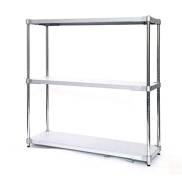 ■材質:棚板=ガルバリウム鋼板、コーナー部=アルミダイキャスト(紛体塗装)、ポール=スチール(クロムメッキ)、キャップ=ポリエチレン、アジャスター=ABS樹脂、テーパースリーブ=ABS樹脂