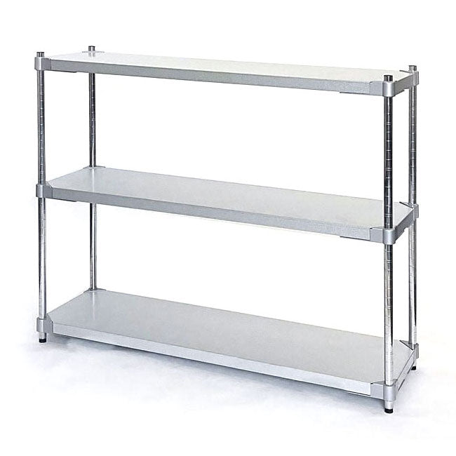 ■材質:棚板=ガルバリウム鋼板、コーナー部=アルミダイキャスト(紛体塗装)、ポール=スチール(クロムメッキ)、キャップ=ポリエチレン、アジャスター=ABS樹脂、テーパースリーブ=ABS樹脂