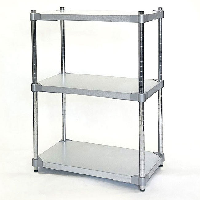 ■材質:棚板=ガルバリウム鋼板、コーナー部=アルミダイキャスト(紛体塗装)、ポール=スチール(クロムメッキ)、キャップ=ポリエチレン、アジャスター=ABS樹脂、テーパースリーブ=ABS樹脂