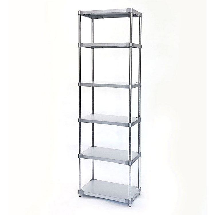 ■材質:棚板=ガルバリウム鋼板、コーナー部=アルミダイキャスト(紛体塗装)、ポール=スチール(クロムメッキ)、キャップ=ポリエチレン、アジャスター=ABS樹脂、テーパースリーブ=ABS樹脂