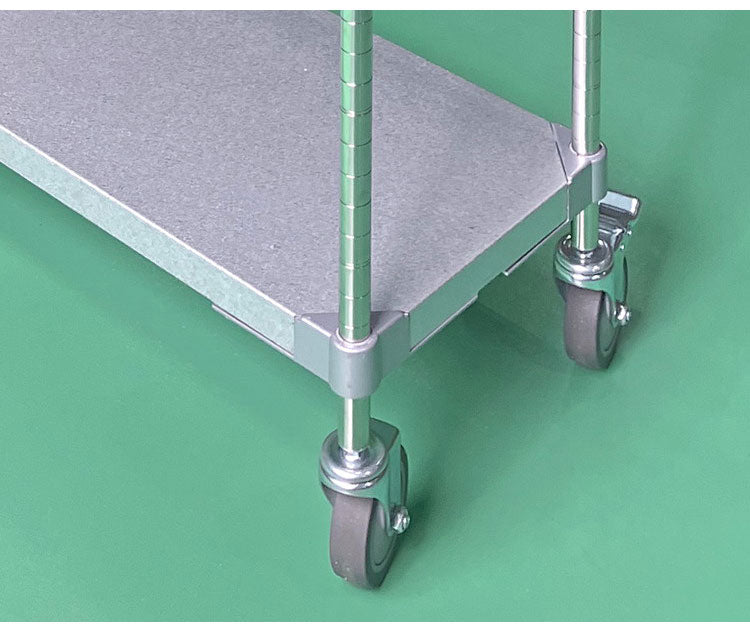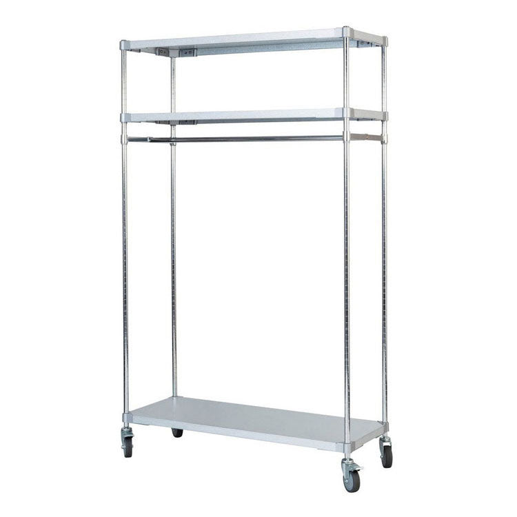 ■材質:棚板=ガルバリウム鋼板、コーナー部=アルミダイキャスト(紛体塗装)、ポール・ハンガーパイプ=スチール(クロムメッキ)、キャップ=ポリエチレン、アジャスター=ABS樹脂、テーパースリーブ=ABS樹脂、キャスター=スチール