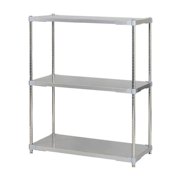 ■材質:棚板=SUS304ステンレス、コーナー部=アルミダイキャスト(紛体塗装)、ポール=SUS304ステンレス、キャップ=ナイロン、アジャスター=SUS304ステンレス、テーパースリーブ=ABS樹脂