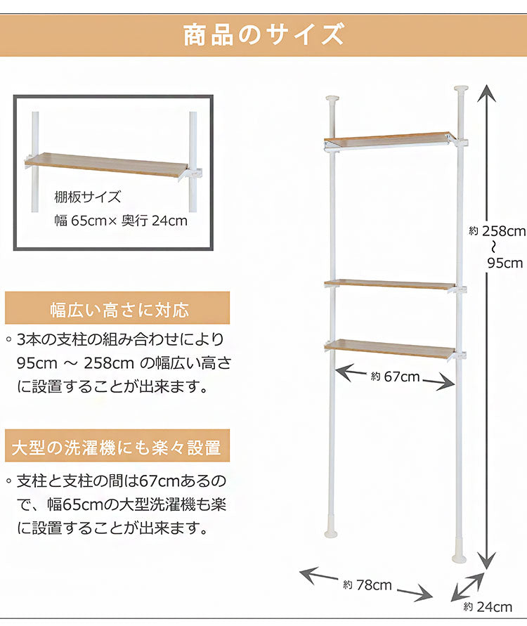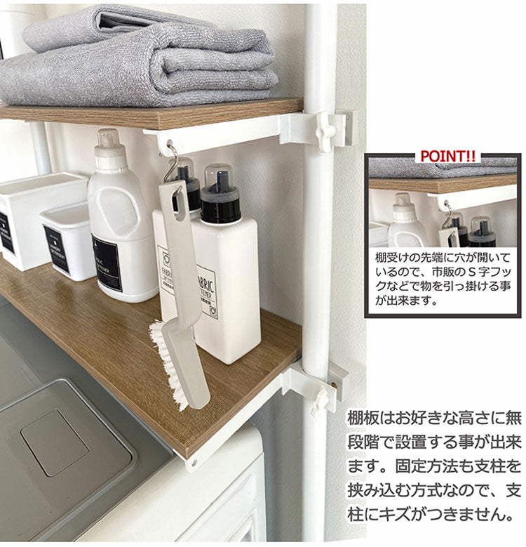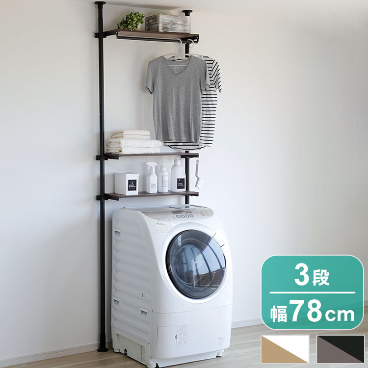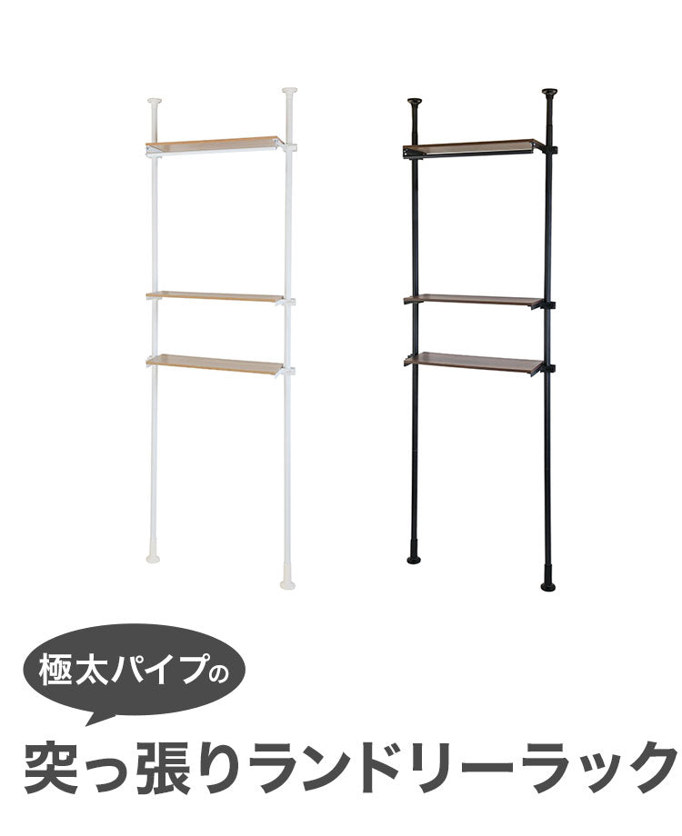 天井まで有効に使える!極太パイプの突っ張りランドリーラック3段 ランドリーラック 3段 洗濯機上収納 洗面台 ラック 突っ張り ラック収納 すきま収納 隙間収納 衣類 オープン収納(代引不可)