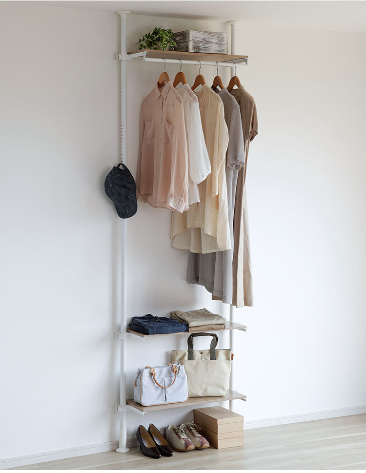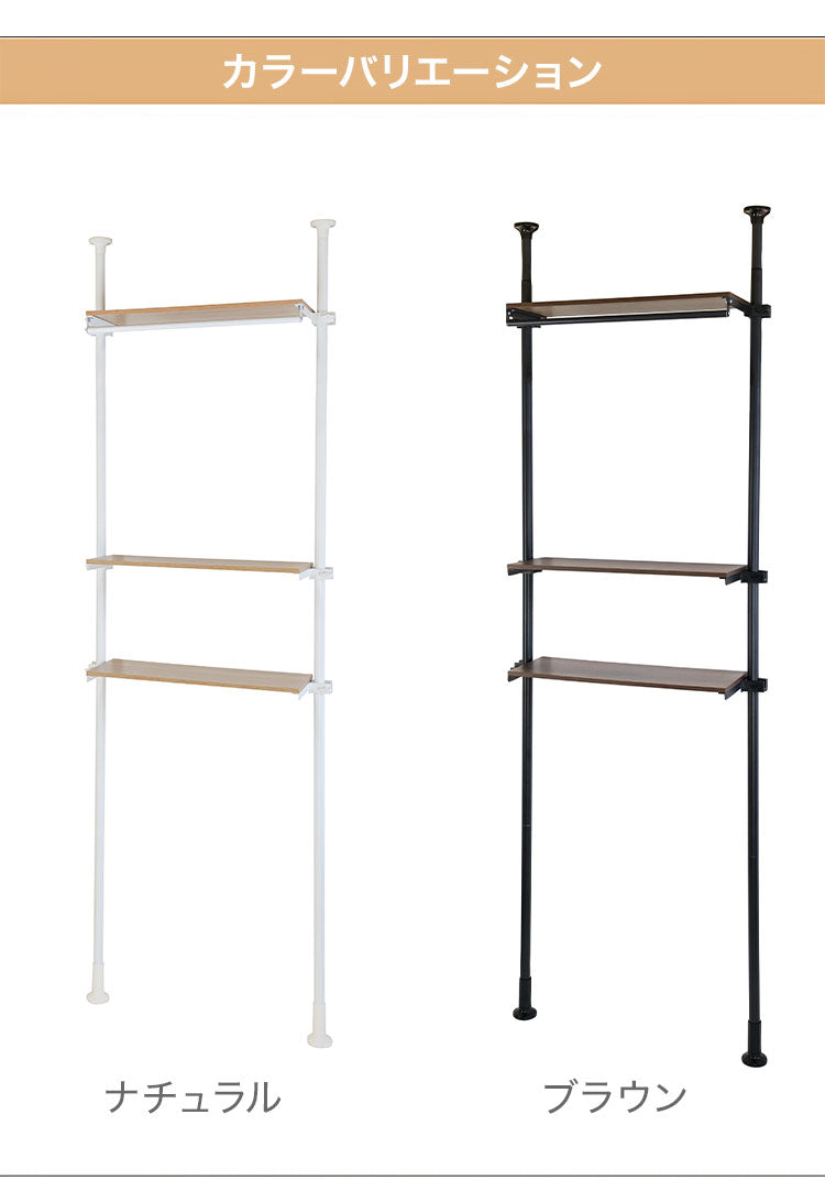 天井まで有効に使える!極太パイプの突っ張りランドリーラック3段