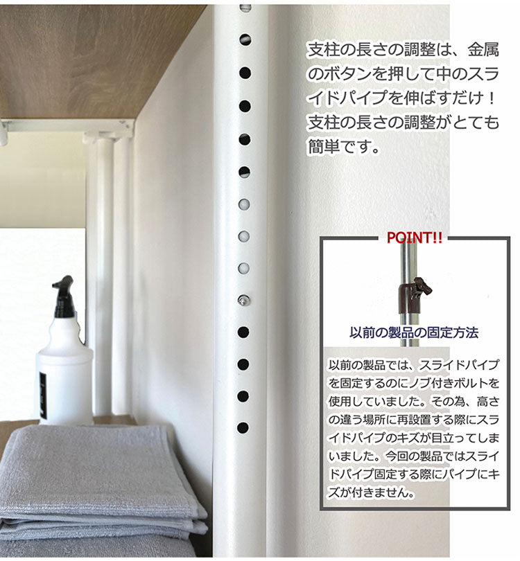 耐荷重:棚板/各5Kg(ハンガーバー使用時も合計重量5Kgまでとしてください)"