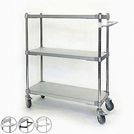 ■材質:棚板=ガルバリウム鋼板、コーナー部=アルミダイキャスト(紛体塗装)、ポール・ハンドル=スチール(紛体塗装)、テーパースリーブ=ABS樹脂、キャスター=スチール